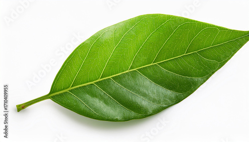 Fototapeta premium Single Fresh Green Leaf Isolated On White Background For Nature