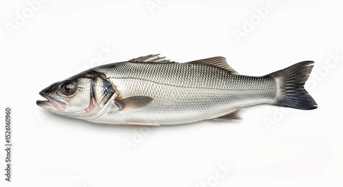 © Irfan, Fototapeta premium Single Fresh Sea Bass Fish Isolated on a Clean White Background Raw Seafood