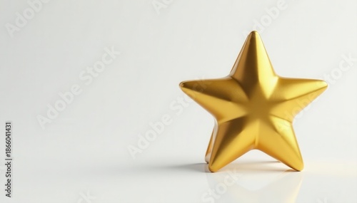 Obraz premium Single gold star, shiny surface, white backdrop, elegant, design element, quality
