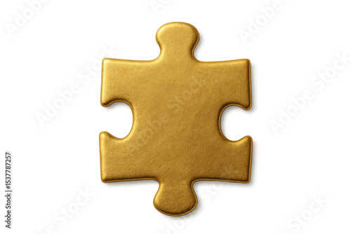 © Krtola , Obraz premium Single golden jigsaw puzzle piece representing problem solving, strategy, and solution on a transparent background