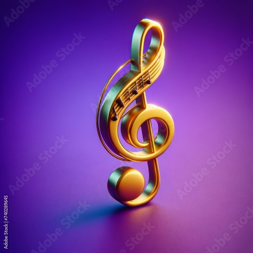 © val, Fototapeta premium Single golden quaver treble clef on vivid purple 3D background.