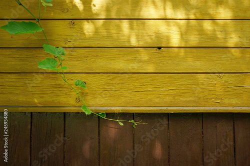 Fototapeta premium Single grapevine and old wooden wall background with sunlight