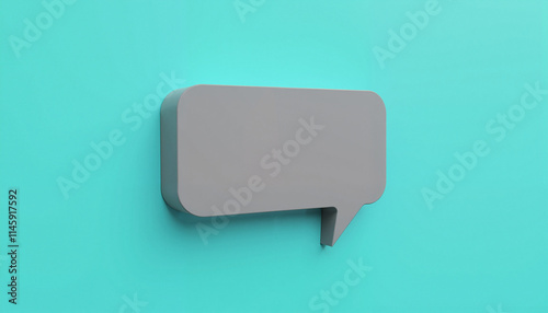 Fototapeta premium Single gray comment bubble with subtle shadow centered on clean turquoise...