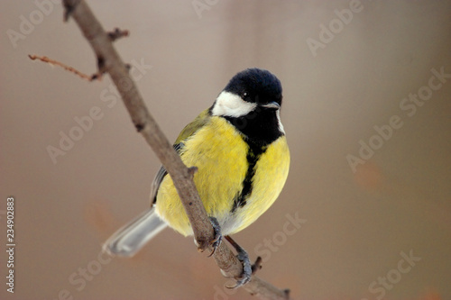 © Art Media Factory, Fototapeta premium Single Great tit bird on a tree branch during a spring nesting period