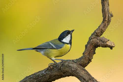 © viktoriya89, Fototapeta premium Single great tit sitting on tree branch