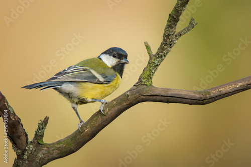 © viktoriya89, Fototapeta premium Single great tit sitting on tree branch