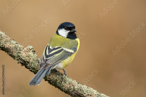 © viktoriya89, Fototapeta premium Single great tit sitting on tree branch