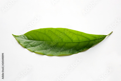 © manhattan_art, Obraz premium Single green avocado tree leaf isolated on white background