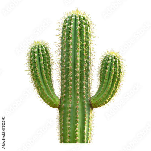 Naklejka premium Single green cactus with delicate tiny spines, vibrant color, isolated...