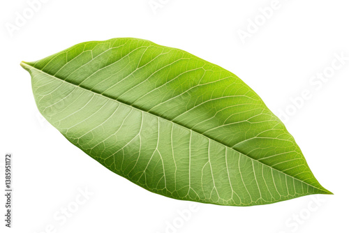 © Oratai, Obraz premium single green cocoa leaf showing its natural texture and intricate vein pattern Isolated on white background