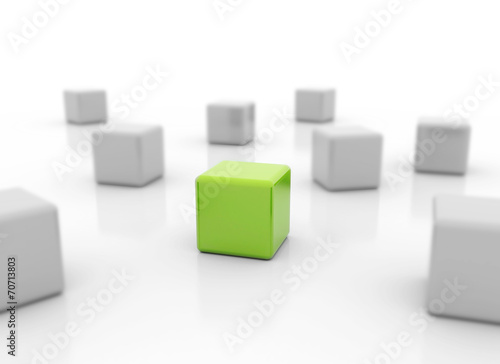 © Jezper, Obraz premium Single green cube standing out