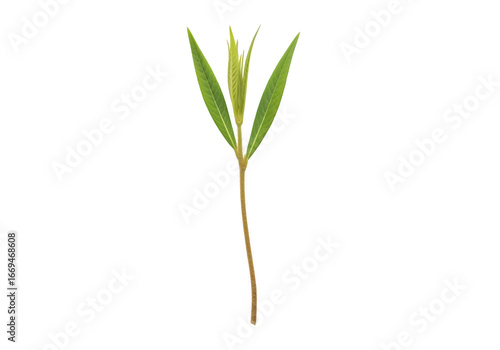 Fototapeta premium Single green leaf branch isolated on transparent background, showcasing its...