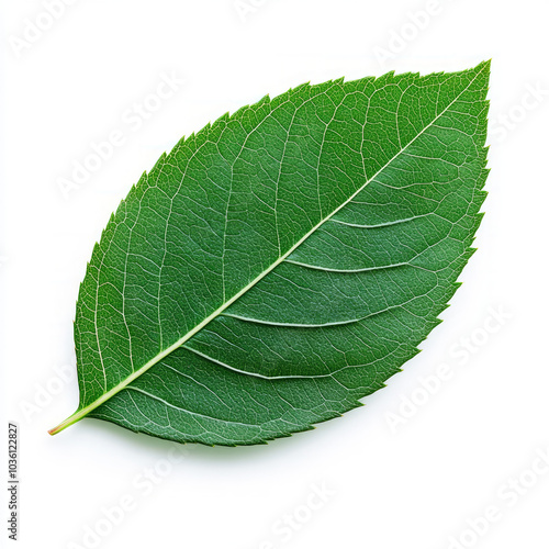 Obraz premium Single green leaf isolated on white background.