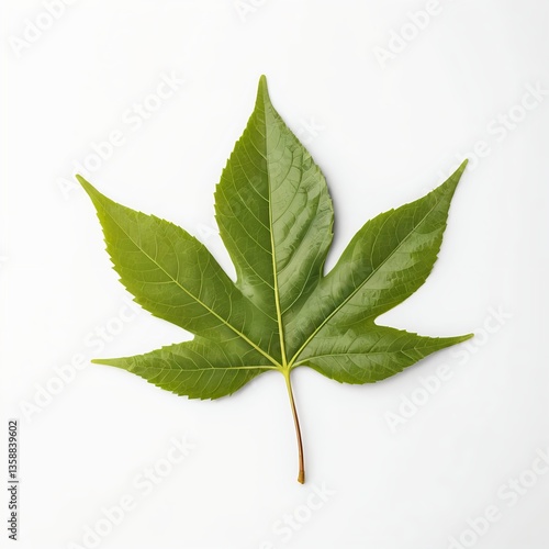 Fototapeta premium Single Green Leaf Isolated on White Background
