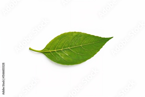 © Thanawadee, Obraz premium Single Green Leaf Isolated on White Background