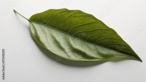 Obraz premium Single Green Leaf Isolated on White Background,