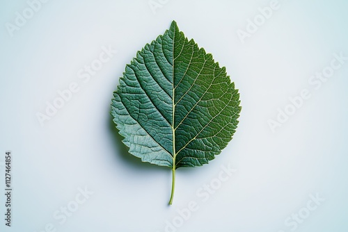 © Alexandr, Obraz premium single green leaf lying on pristine white background symbolizing simplicity and sustainability