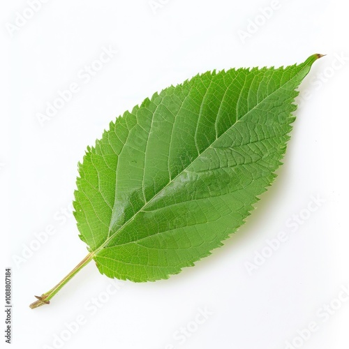© STwul, Obraz premium Single Green Leaf on a White Background