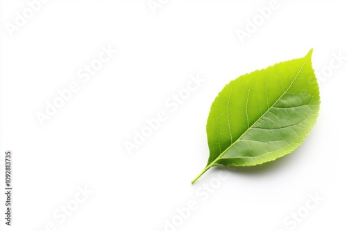 Obraz premium Single green leaf on a white isolated background