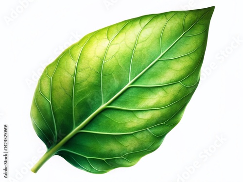 © prapatsorn, Obraz premium Single Green Leaf on White Background - Isolated Botanical Stock Photo
