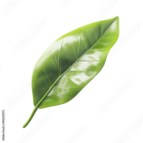 © Tohamina, Fototapeta premium Single green leaf on white background with colorful lines