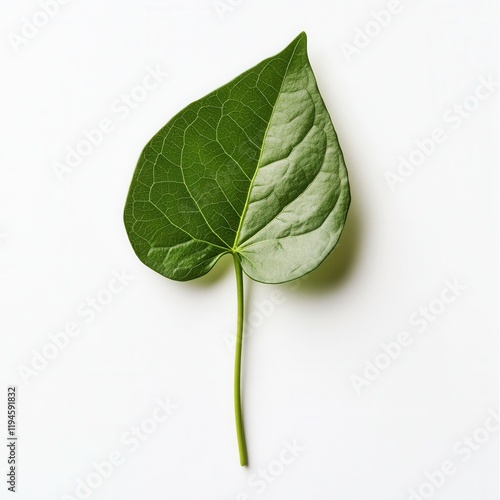 Obraz premium Single green leaf, white background, nature design