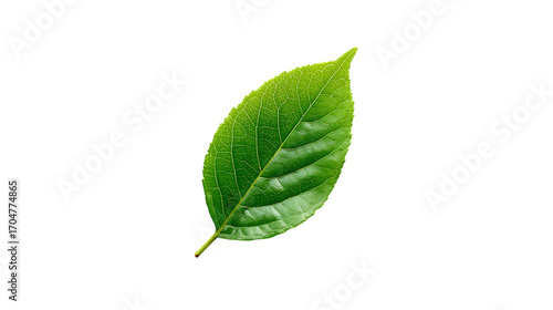 Fototapeta premium Single green leaf with water droplets isolated on transparent background
