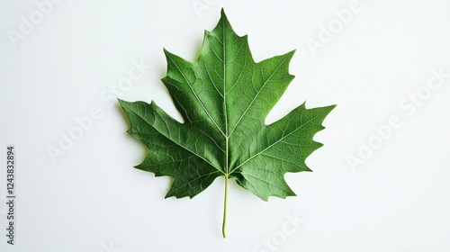 © isend, Fototapeta premium Single Green Maple Leaf on White Background: Nature's Simplicity