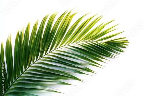 Obraz premium single green palm frond on white background conveying fresh tropical calm