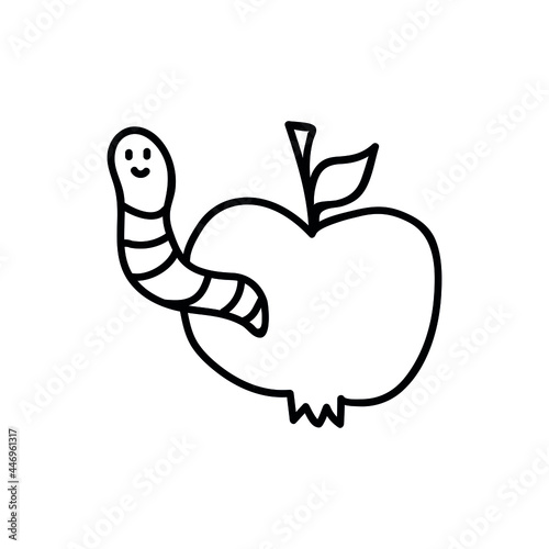 Naklejka premium Single hand drawn apple with a worm. Doodle vector illustration. Isolated on a white background.