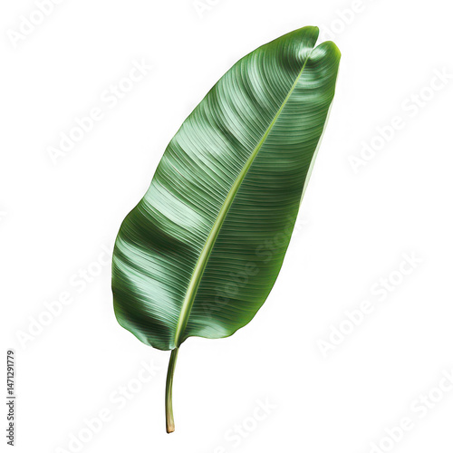 © Amena, Fototapeta premium Single Heliconia Rostrata Leaf Isolated on Black Background
