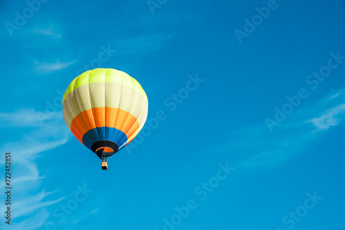 Naklejka premium Single hot air balloons flying across the blue sky, copy space