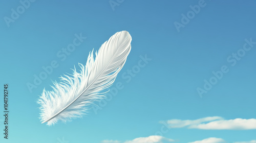 © Wasun, Obraz premium single hyper realistic feather drifting gracefully against bright blue sky, evoking sense of tranquility and lightness