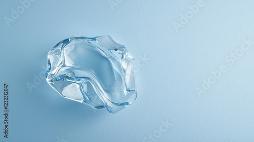 © Juan, Fototapeta premium Single ice cube on pastel blue background
