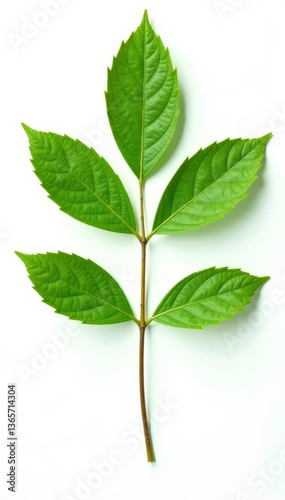 Obraz premium Single isolated branch on white background with subtle leaf veins and...