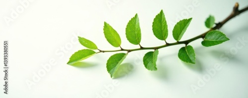 Fototapeta premium Single isolated branch on white background with subtle light source, nature, texture, foliage