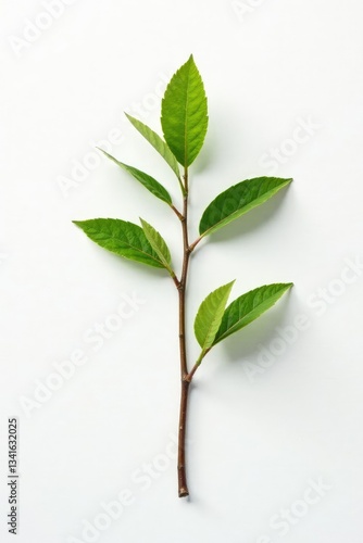 © Hugnaka, Fototapeta premium Single isolated branch on white background with subtle texture, simple, nature