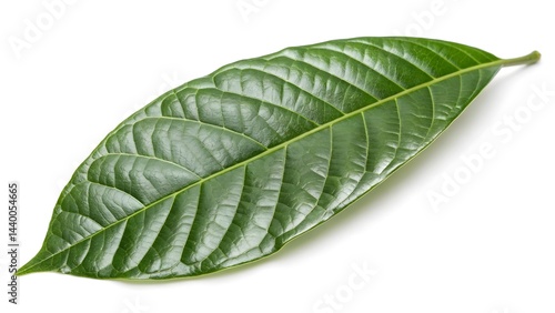 Obraz premium Single isolated green leaf with visible veins detailed close up shot
