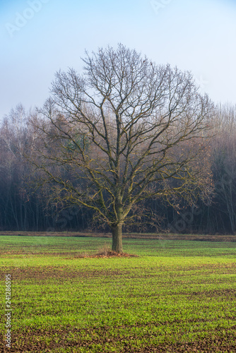 © Martins Vanags, Fototapeta premium single isolated tree in green meadow field in summer