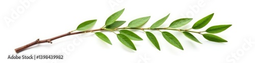 © Sathaporn Buarabut, Obraz premium Single isolated willow branch with flexible stem on white background, woody details, willow