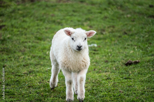 © Chrispo, Obraz premium Single lamb facing camera in the rain