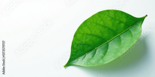 Fototapeta premium Single large leaf on white background with subtle veins, nature, green