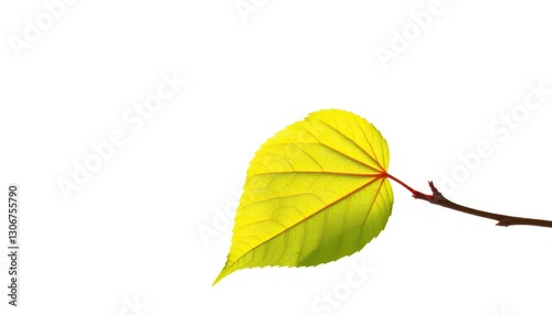 Obraz premium Single leaf, detached from branch, stark white backdrop, background, chlorophyll