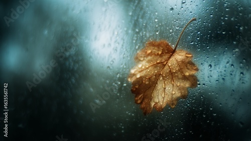 © Andrey, Obraz premium Single leaf on condensation-covered window