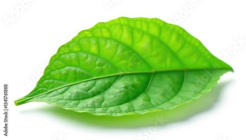 © suchetpong, Obraz premium Single leaf with veins against white background, isolated, green