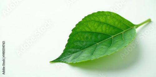 Fototapeta premium Single leaf with veins isolated on white background with subtle gradient, Closeup, Botany, Botanical