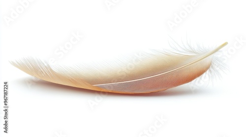 © Wayu, Obraz premium Single Light Brown Bird Feather Isolated on White Background