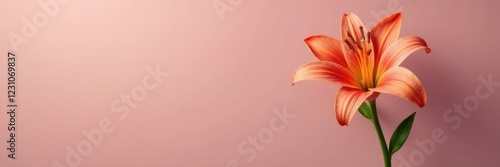 Naklejka premium Single lily with a few stray leaves and stems, simple, bloom