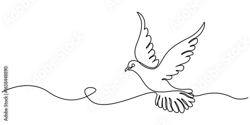 Fototapeta premium Single Line Dove Drawing Peace, Flight, Freedom, Hope, Art, Simple Linear Drawing, flying dove bird one continuous line drawing vector illustration, Editable stroke