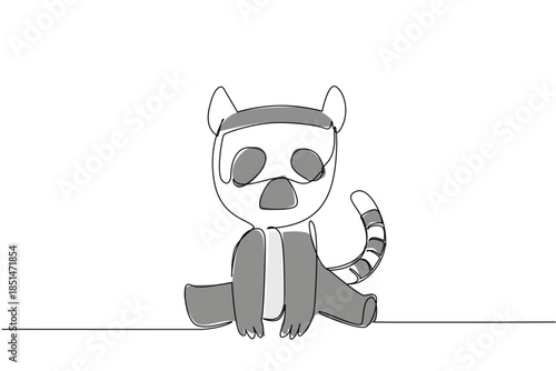 Fototapeta premium Single line drawing of a cute baby lemur sitting down for wildlife nature...
